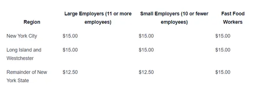 The following table provides an overview of the minimum wage rates in New York State: